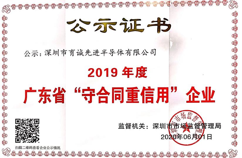4、在2019年獲得廣東省守合同重信用含企業稱號。